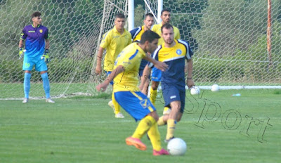 Η προσπάθεια του Χρήστου Μπελεβώνη (Φωτογραφία) στο 29΄ κατέληξε στο οριζόντιο δοκάρι του Μιχάλη Παρδαλού.